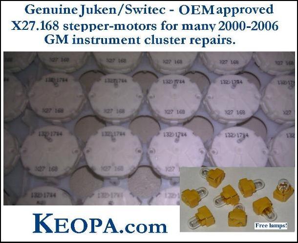 Genuine X27.168 Juken / Switec stepper-motors are OEM approved replacement motors for many GM instrument clusters from 2000 to 2006.  The X27.168 replaces original C5.168, XC5.168, X15.168, or X25.168 previous revisions.