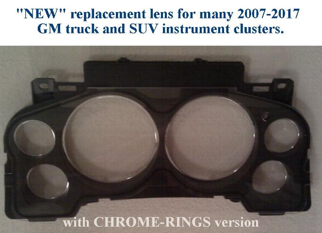 These are NEW OEM replacement instrument cluster lenses for many 2007-2013 GM truck and SUV vehicles.  Don't buy used or salvaged when you can have this NEW replacement clear acrylic lens and black ABS bezel assembly.