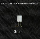 Our LED cubes are designed and produced with “wide-dispersion” to provide even light without “hot spots”.  Both 5mm and 3mm sizes have the same technical specifications, other than physical size.  The built-as 14.4 volt also eliminates “flicker” and allows trouble-free use of the vehicle illumination-dimming switch.